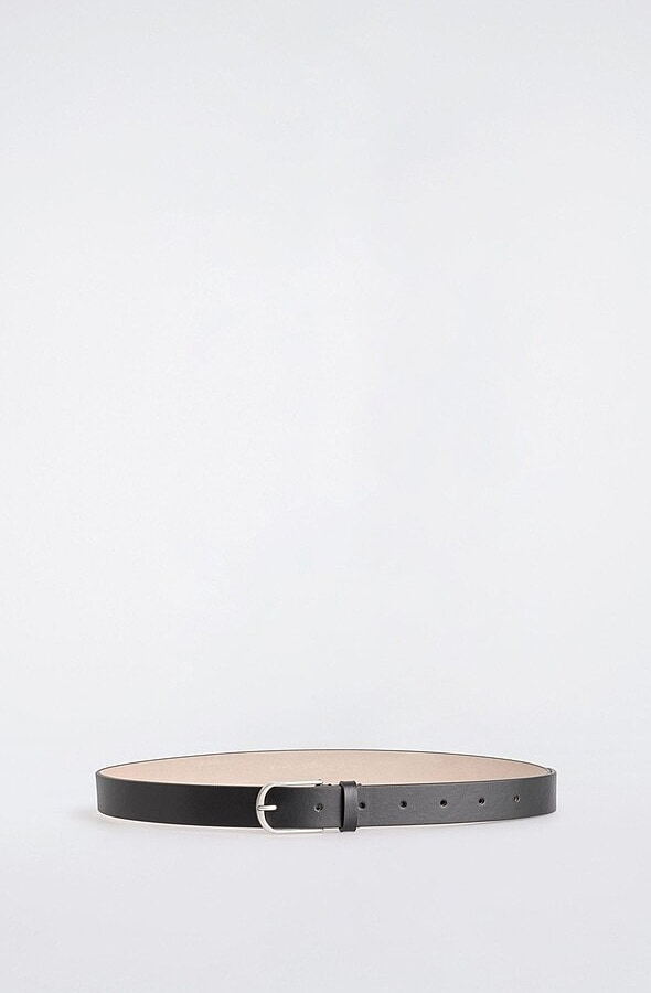 Curved Buckle Cow Leather Belt Black