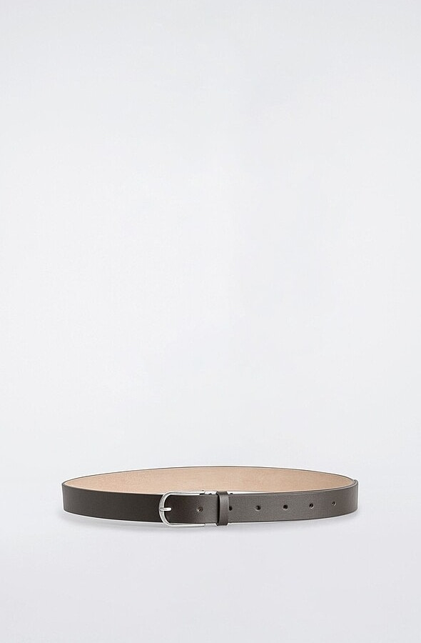 Curved Buckle Cow Leather Belt Dark Brown