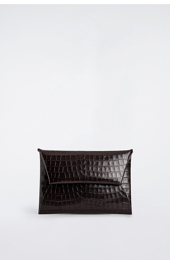Embossed Leather Clutch Bag Dark Brown