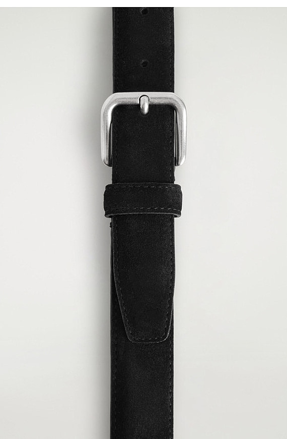 Square Buckle Cow Leather Belt Black