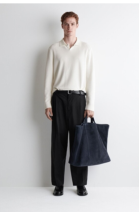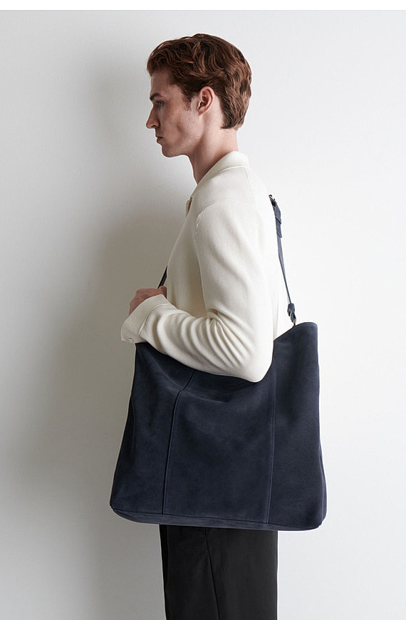 Suede Leather Tote Bag In Navy Blue