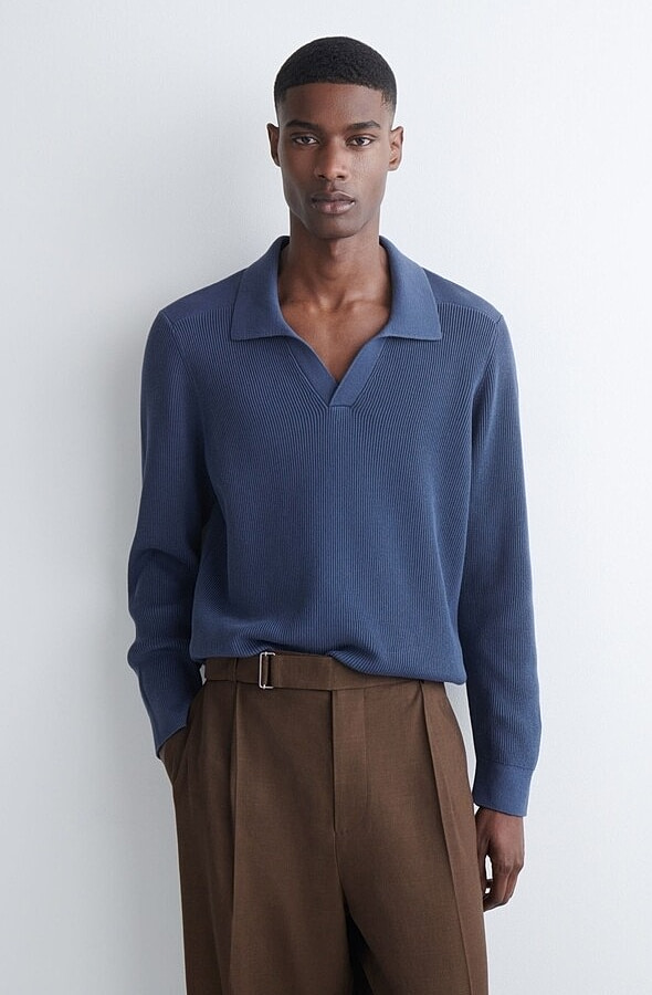 Cotton Polo-Collar Sweater Navy