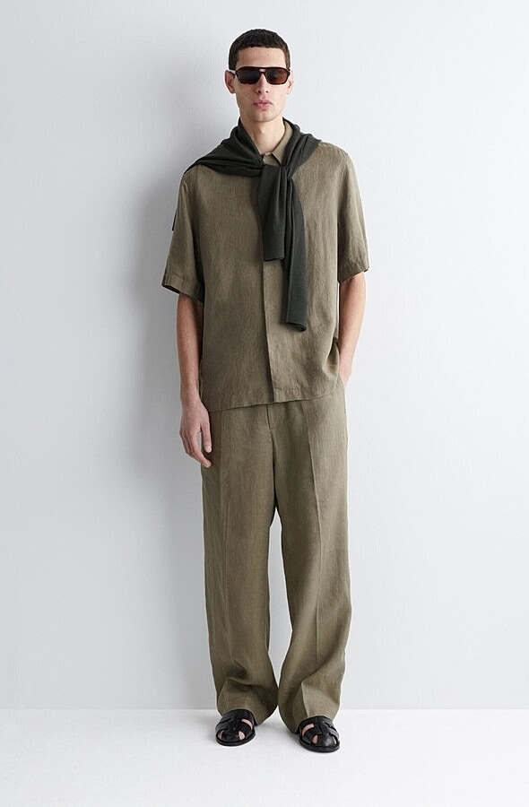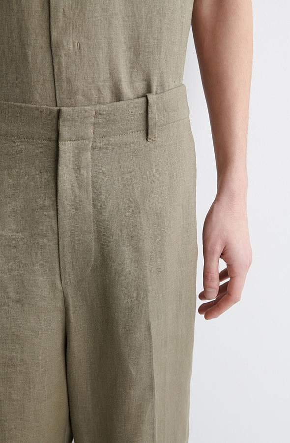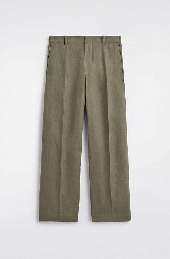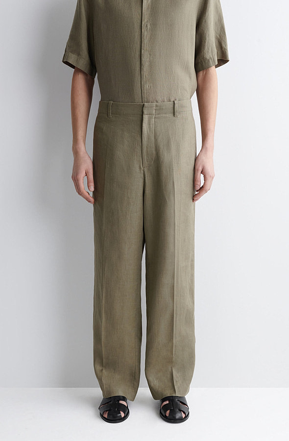 Linen Straight Trousers Khaki