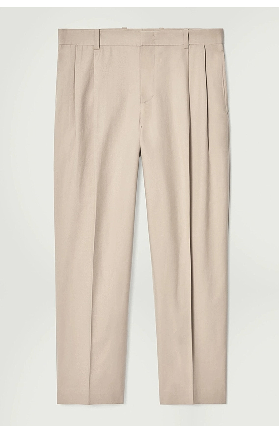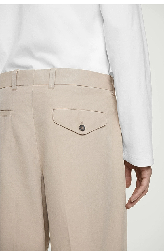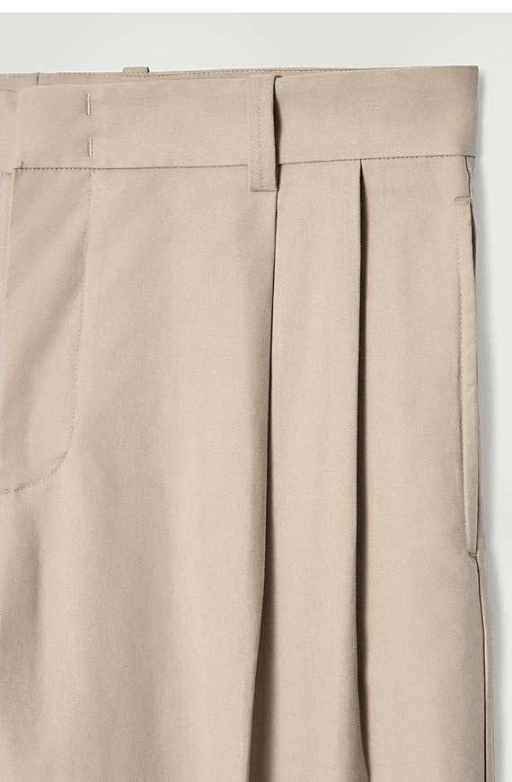 Cotton Pleated Trousers Beige