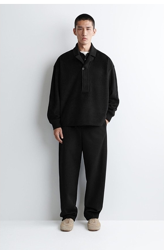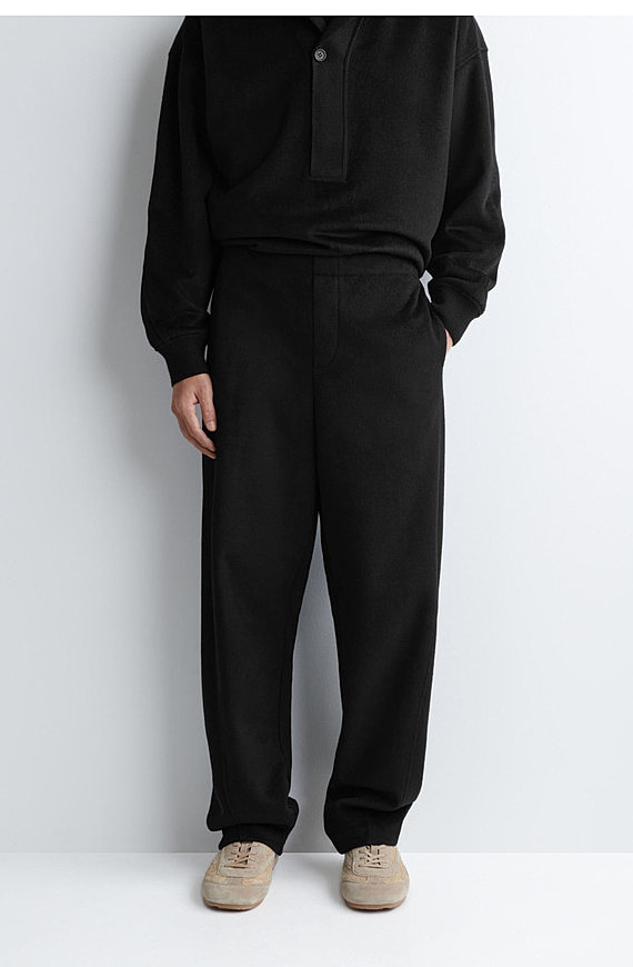 Wool Straight Trousers Black