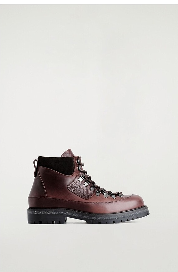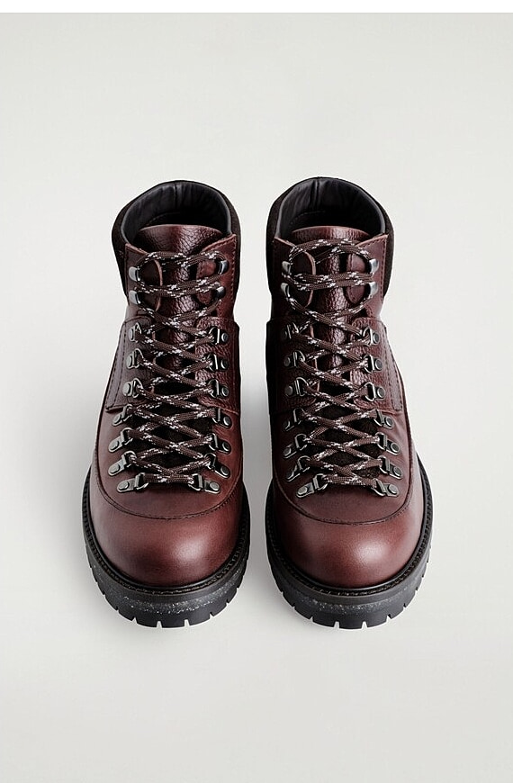 Grained Leather Trim Hiking Boots Brown