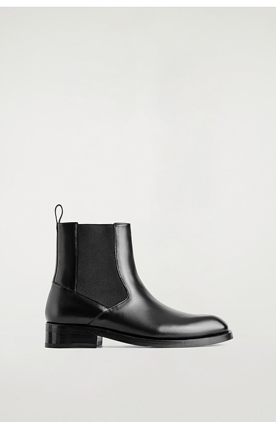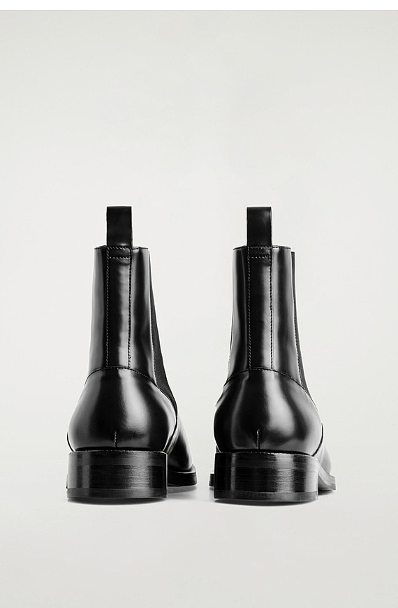 Square Head Chelsea Leather Boots Black