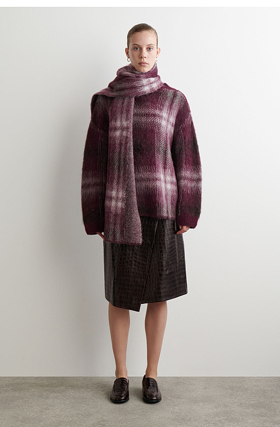 Alpaca Blend Plaid Scarf Wine Red