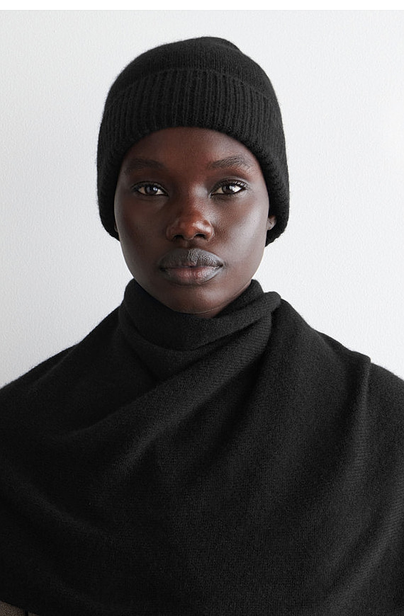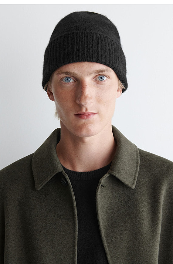 Neutral And With Cashmere Knitted Folded Cap Black