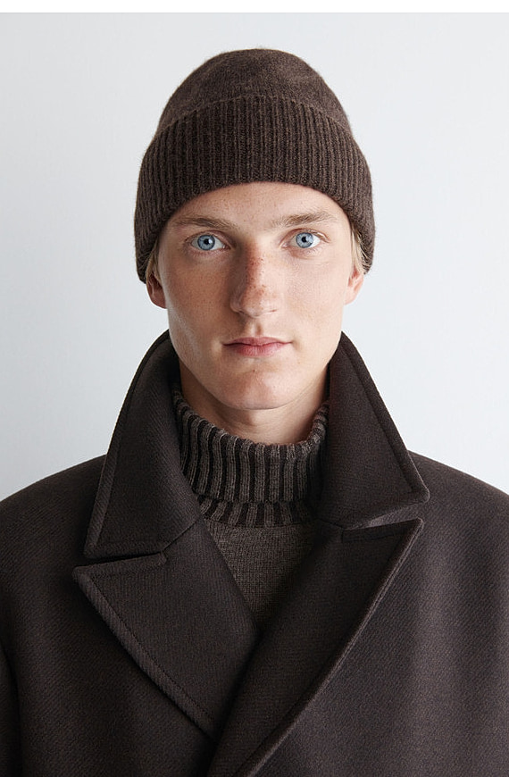 Neutral And With Cashmere Knitted Folding Cap Dark Brown