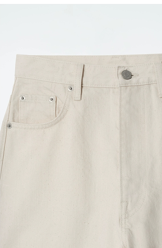 Standard Barrel Mid Waist Denim Beige Spring & Fall Wear Mat