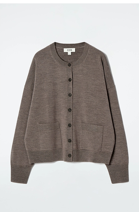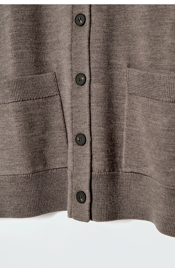 Wool Round-Neck Cardigan Brown