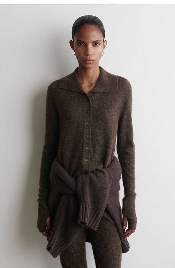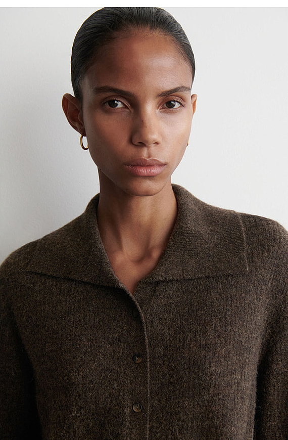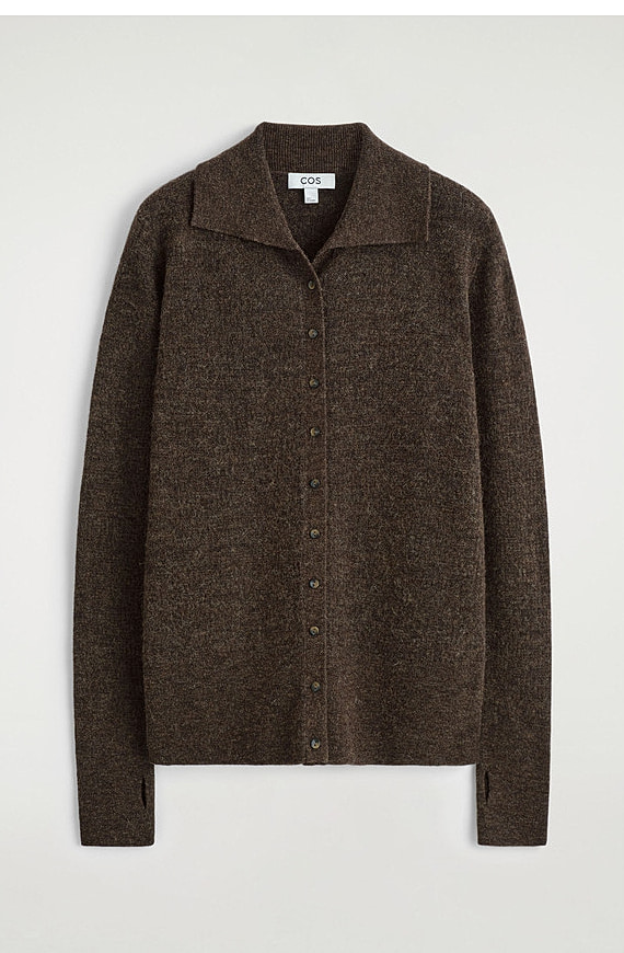 Wool Collared Cardigan Brown