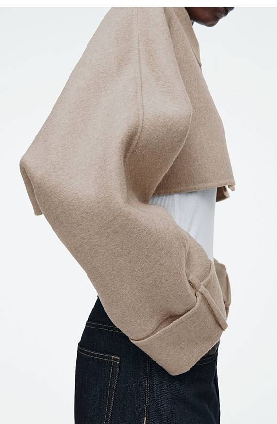 Casual Short Fleece Blend Outerwear Beige