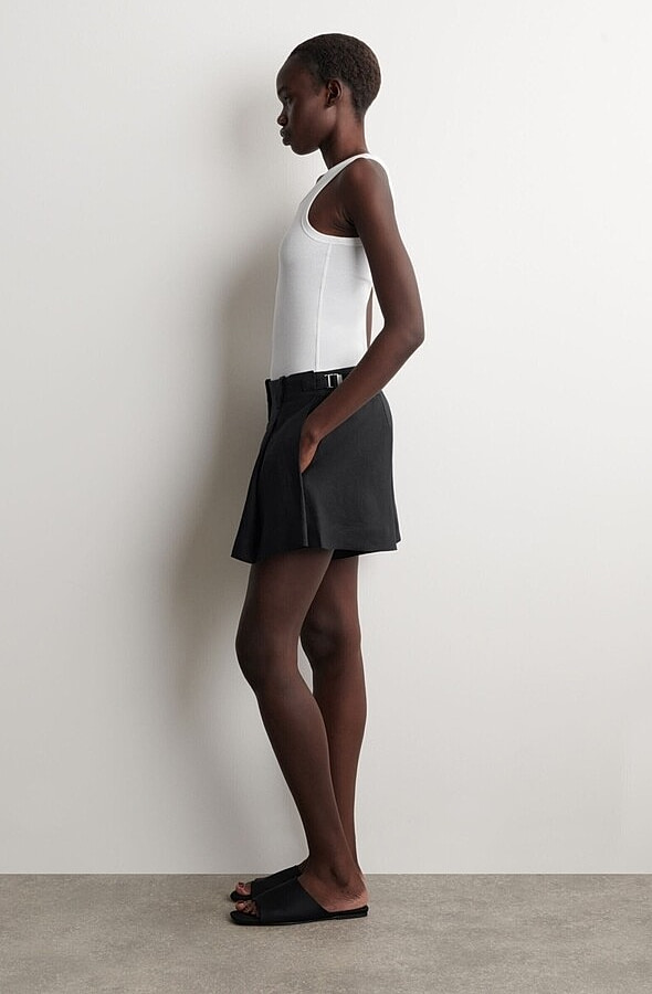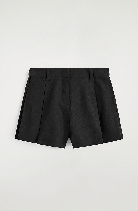 Linen Pleated Shorts Black