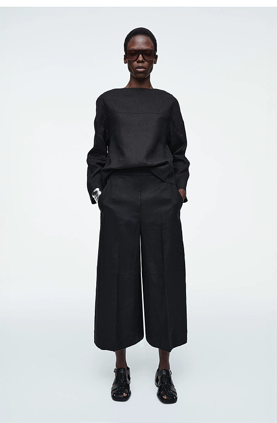 Linen Wide-Leg Pants Black