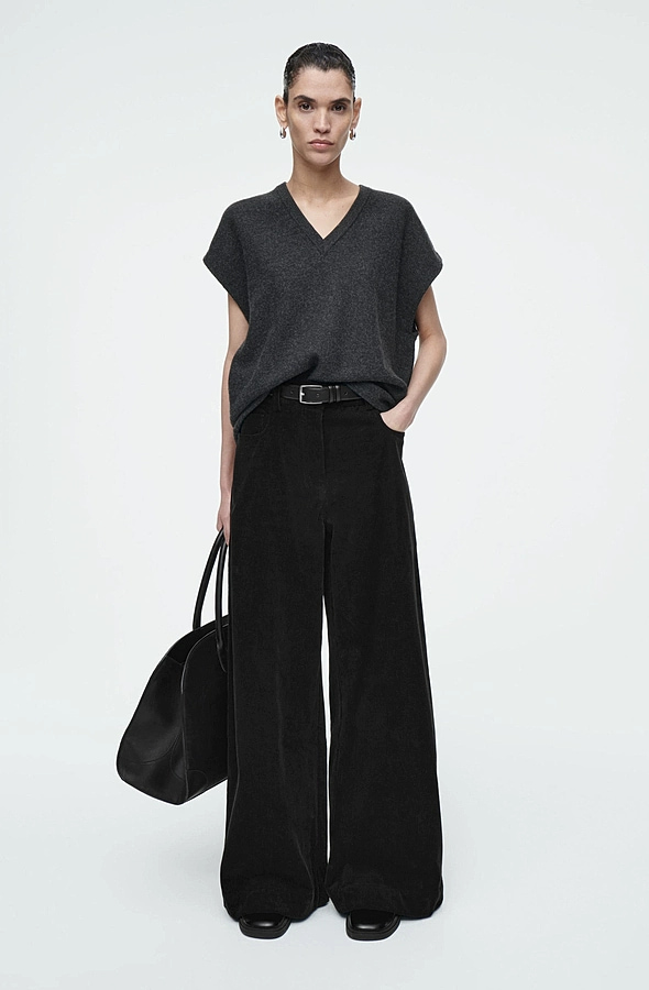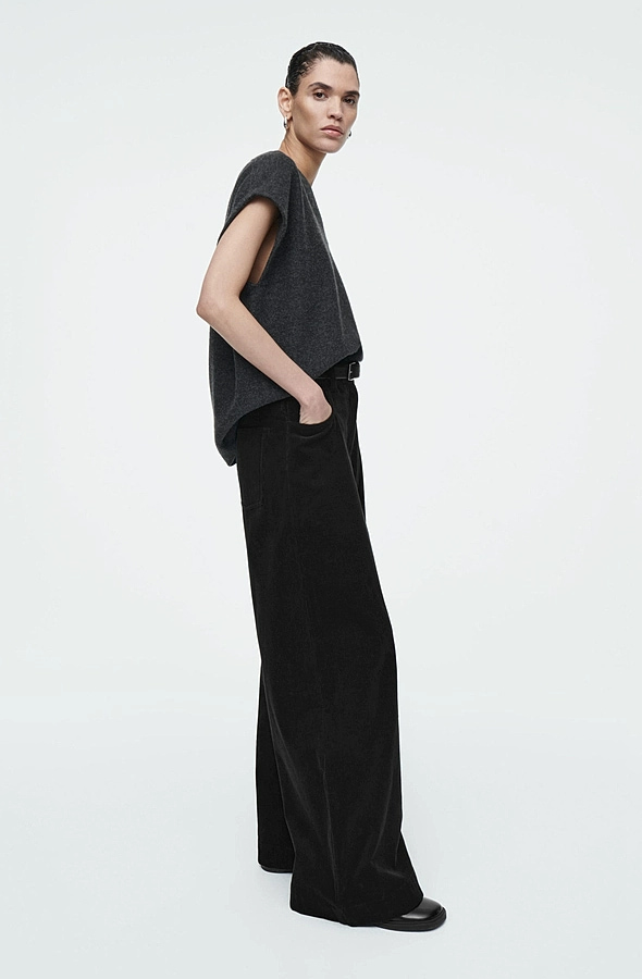 Corduroy Wide-Leg Pants Black