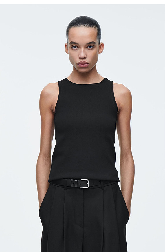 Knitted Round-Neck Vest Black