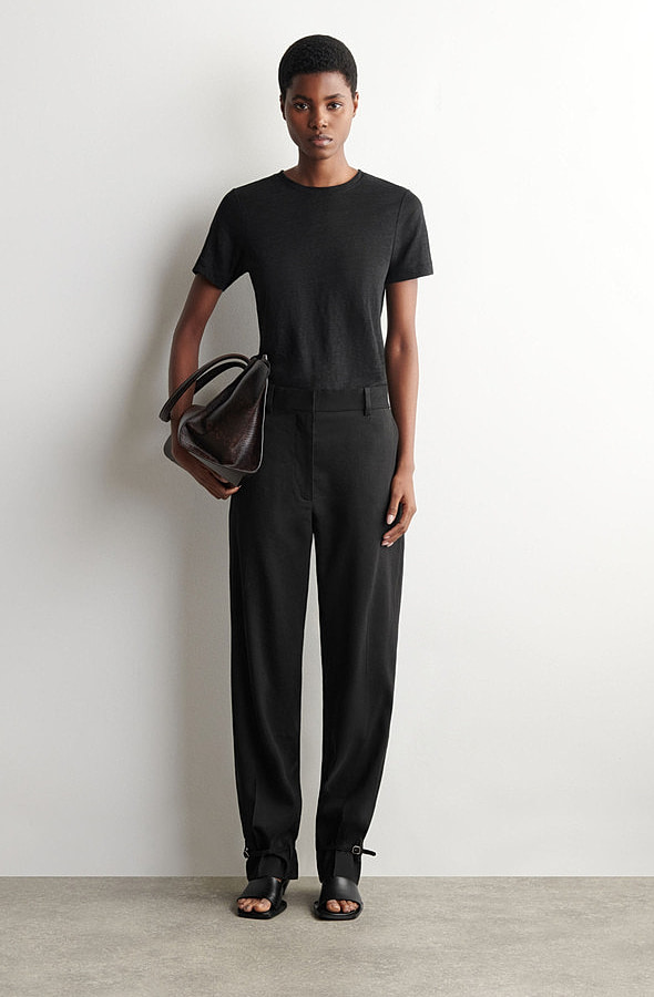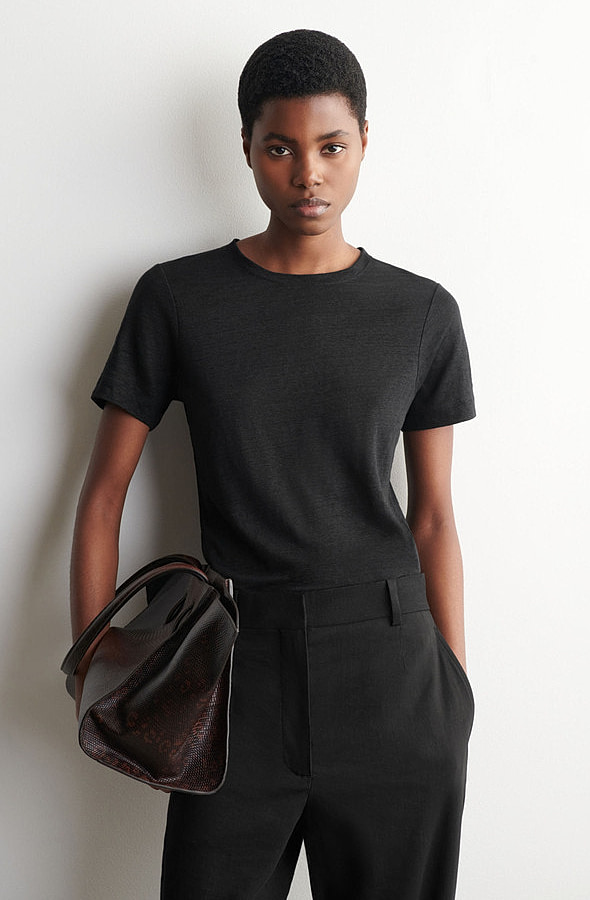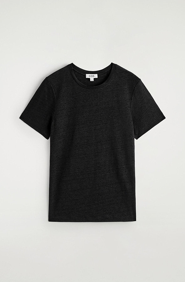 Linen Round-Neck T-Shirt Black