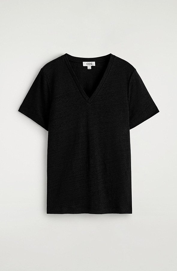 Linen V-Neck T-Shirt Black