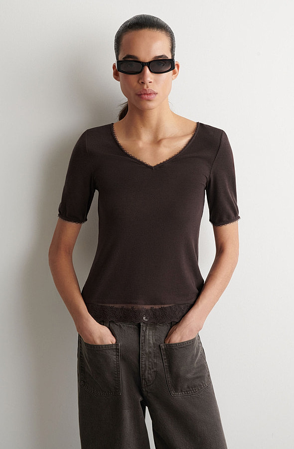 V-Neck T-Shirt Brown