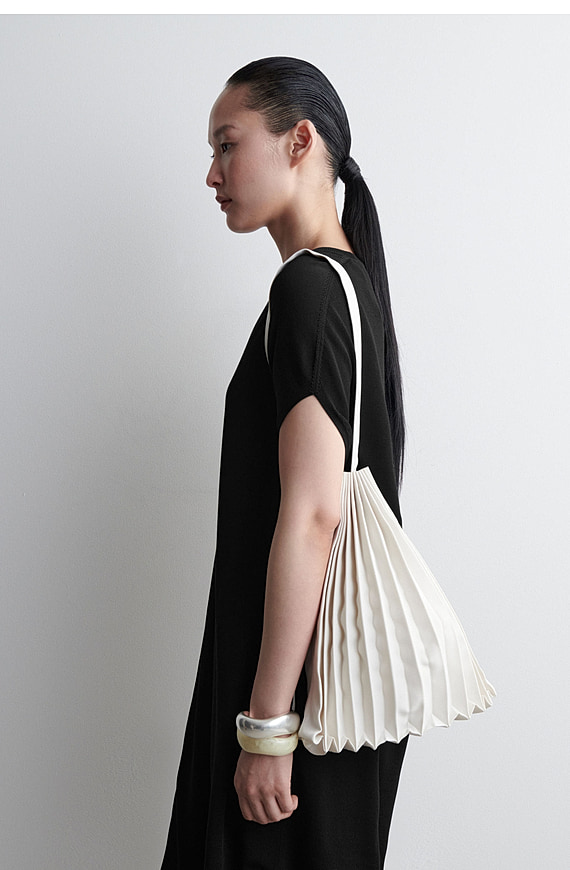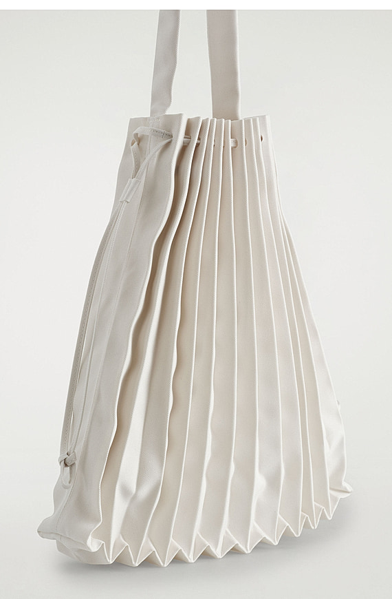 Accordion Canvas Tote Bag Beige White