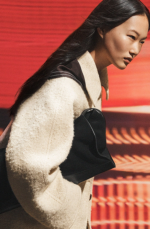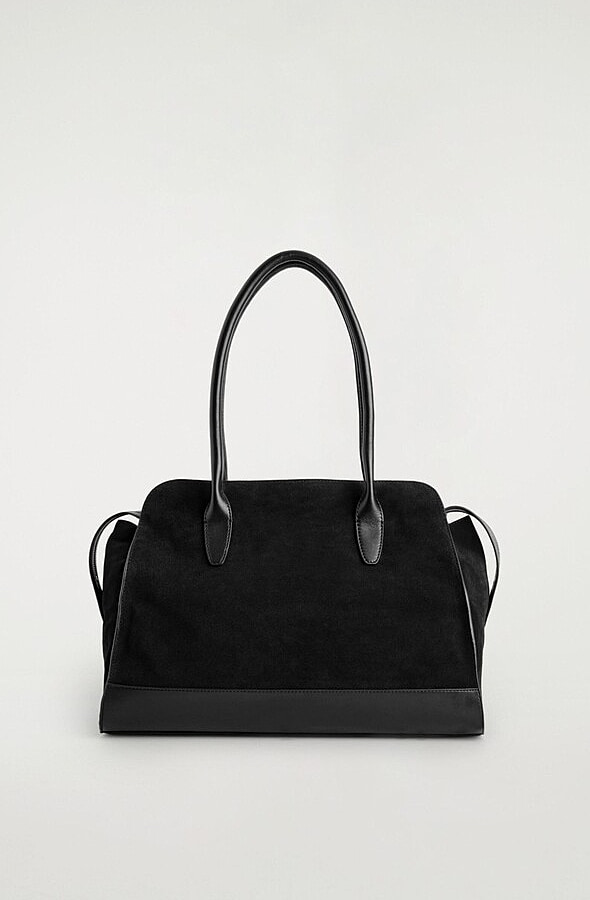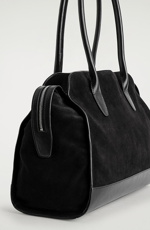 Zippered Leather Tote Bag Black